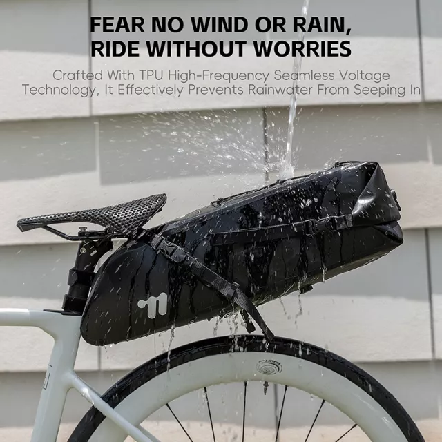 Take every journey with confidence using this spacious, waterproof bicycle tail bag designed for long-distance adventures. Built from durable TPU material, it shields your gear from rain, splashes, and mud, keeping everything dry no matter the weather. With an impressive capacity of approximately 3.3 gallons (12.5L) and a lightweight design of just about 1 lb, it offers all the room you need without adding unnecessary bulk.