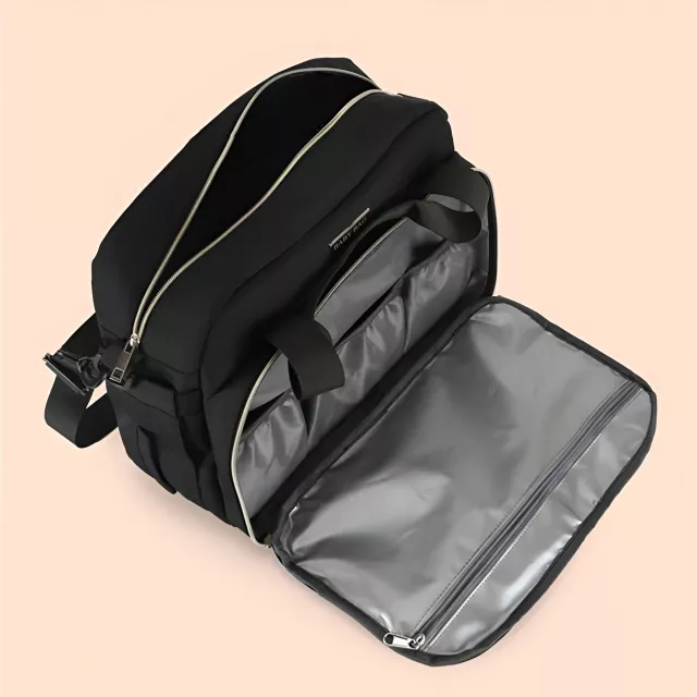Meet the ultimate companion for modern moms on the go. This multifunctional maternity and baby stroller bag is designed to keep everything organized, accessible, and protected—no matter where your day takes you. With a sleek black design and a spacious, waterproof build, it brings together convenience and style in one essential travel bag. Whether you’re heading out for a quick walk, a family trip, or a full day outdoors, this bag ensures you have everything you need right at your fingertips.