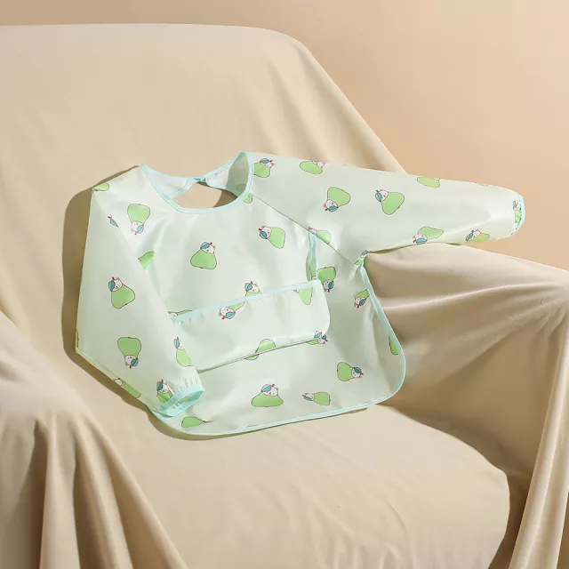This bib combines a smooth polyester exterior with a gentle PU layer, making it completely waterproof and easy to wipe clean. Long sleeves provide extra coverage, while the soft elastic cuffs ensure a snug yet comfortable fit. Its playful cartoon prints add charm, making mealtime more enjoyable for both boys and girls.