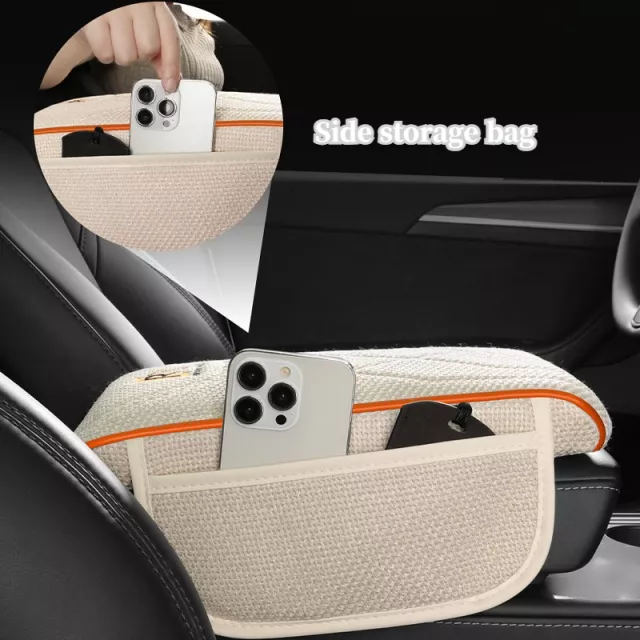 Widened Breathable Car Armrest Pad with Storage Pockets