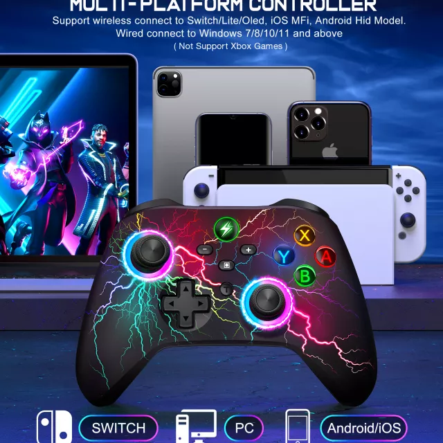 This controller connects wirelessly to Switch consoles and pairs via Bluetooth with Android and iOS devices that support HID and MFI protocols. Need reliable performance on PC? Simply plug in for smooth wired play compatible with X-Input and platforms like Steam.