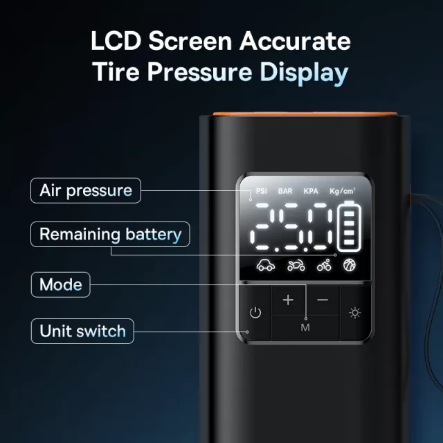 This inflator is perfect for everyday driving, road trips, cycling sessions, or emergency roadside situations. Keep it in your car for unexpected flats, take it on bike rides for quick pressure adjustments, or use it at home to inflate sports equipment. The super-long standby battery ensures it’s ready even after long periods of no use.