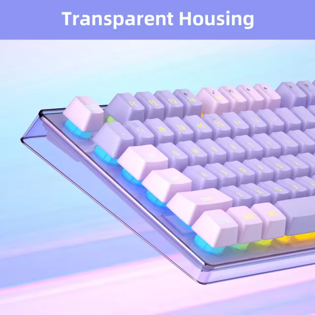 If you love a clean and modern aesthetic, this set delivers. The keyboard features a transparent base that creates a brilliant lighting effect across the entire surface. With 5 lighting modes, 7 solid colors, a rainbow option, adjustable brightness, and customizable speeds, you can match your mood or environment effortlessly. Shine-through keys keep everything easy to see in low-light rooms, while the mouse includes an elegant RGB light strip for the perfect finishing touch.