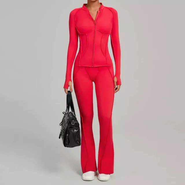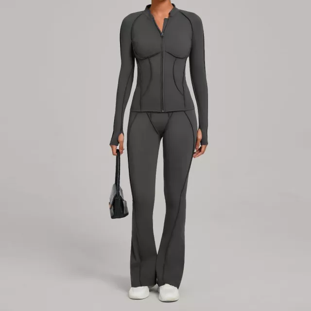 Women’s Autumn Winter Zipper Long Sleeve Fitness Yoga Outfit Two-Piece Set