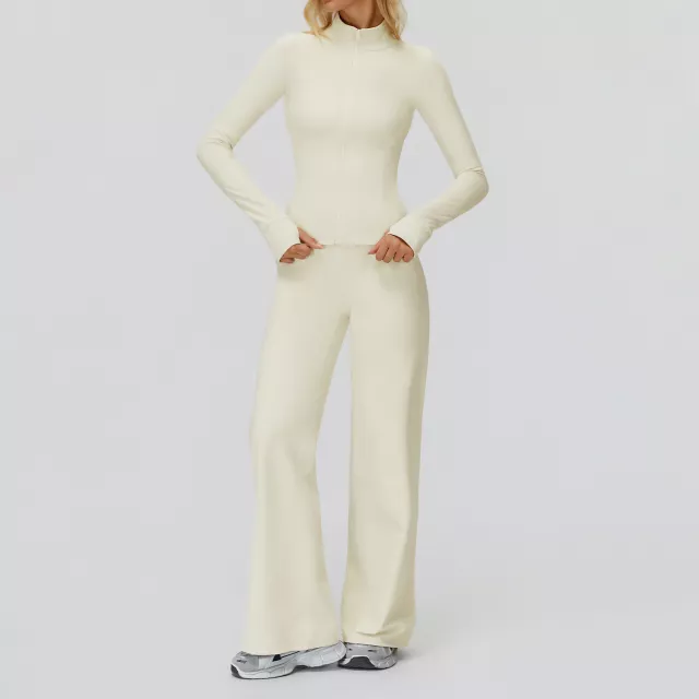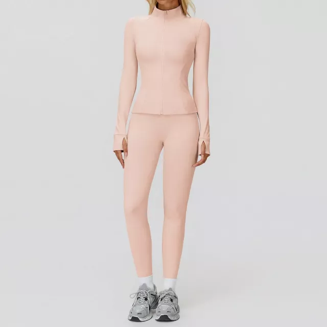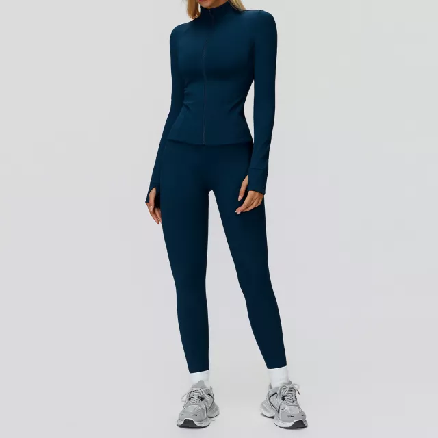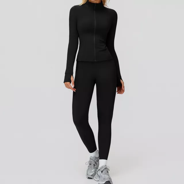 Step into your training routine with a fitness set designed to keep up with every move you make. This women’s long-sleeve yoga and gym outfit blends a smooth knit design with a sleek, modern look, giving you confidence from warm-up to cool-down. Crafted from a breathable polyester and spandex blend, it offers super elasticity, quick-dry performance, and a flattering fit that stays true to your size. Whether you’re stretching, lifting, cycling, or flowing through yoga, this set offers support, style, and freedom of movement.