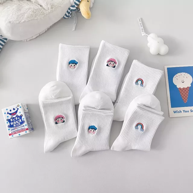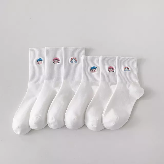 These socks feature a clean white look with a delicate rainbow embroidery that adds a fun, cheerful accent without overwhelming your outfit. The knitted craftsmanship ensures a smooth, durable finish, while the standard thickness provides comfort during spring, summer, and autumn. Whether you’re heading to class, going for a walk, or completing a sporty look, these socks give you a balance of simplicity and personality.