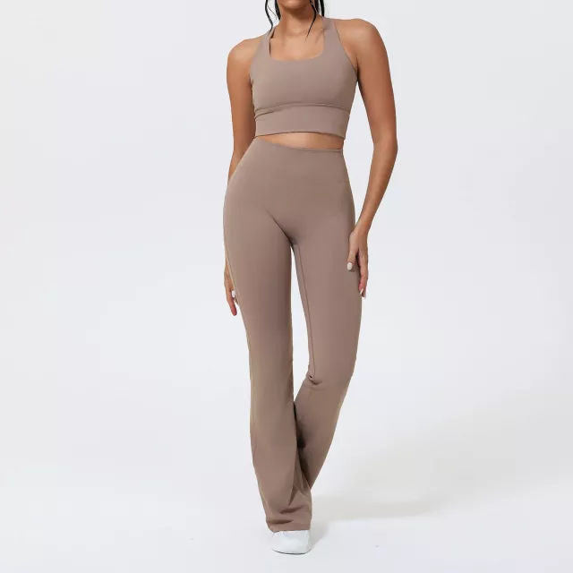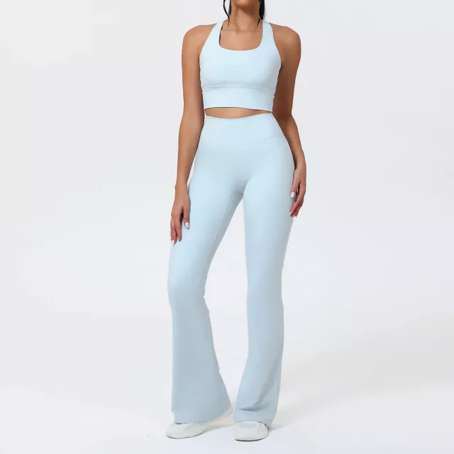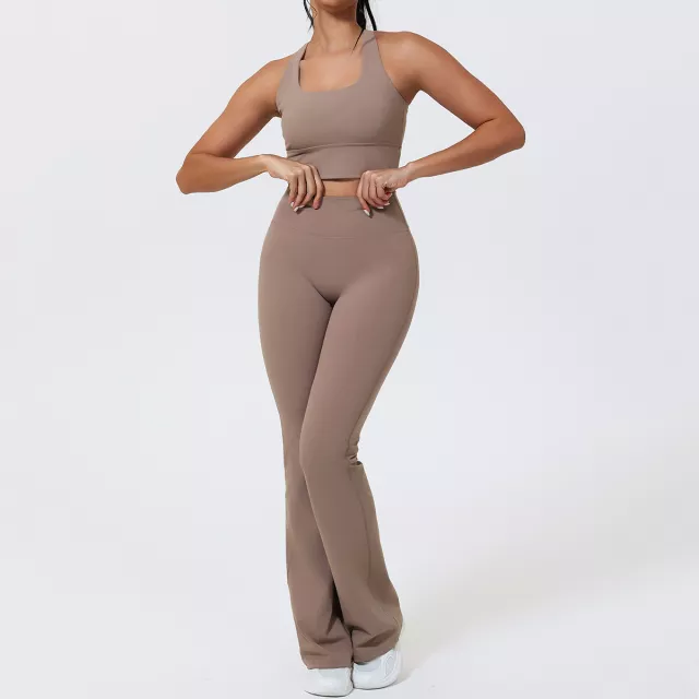 Step into your workouts feeling supported, smooth, and stylish with this women’s quick-dry sports set. Designed for yoga, gym training, running, Pilates, and everyday athleisure, this two-piece outfit delivers everything you need for movement that feels amazing. The set includes a shockproof sleeveless vest and flattering bell-bottom pants, crafted with a soft, stretchy blend of polyester and spandex for a body-hugging fit that moves with you.