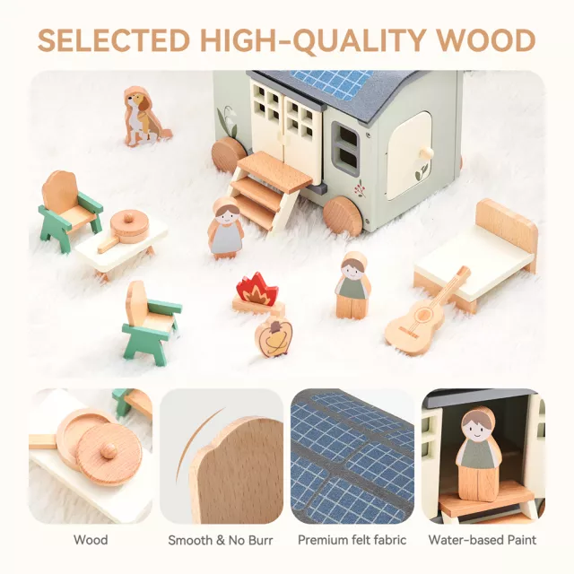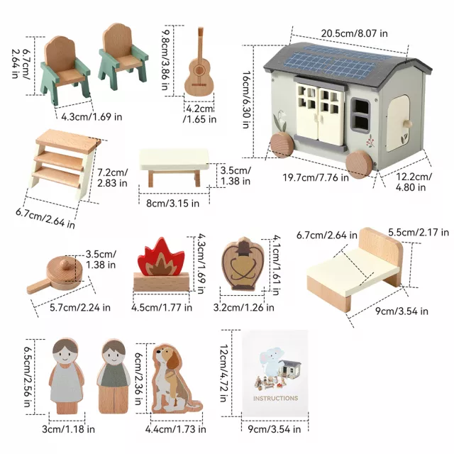 This playset includes a beautifully crafted wooden RV vehicle complete with miniature accessories that mimic real camping gear. The nature-themed design sparks curiosity, while the occupation and sports elements inspire kids to imagine exciting outdoor roles—from explorers and hikers to wildlife spotters. Its compact size makes it easy to carry, measuring conveniently for small hands and portable play.