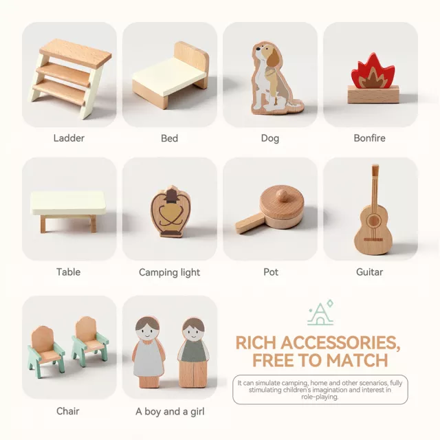 Designed for young adventurers ages 3 to 6, this set introduces kids to camping life in the most playful way. Its wooden construction not only feels sturdy in little hands but also encourages unplugged play and fine-motor development. Perfect for indoor adventures, dollhouse expansions, or outdoor garden play, this toy is versatile enough to use any time inspiration strikes.