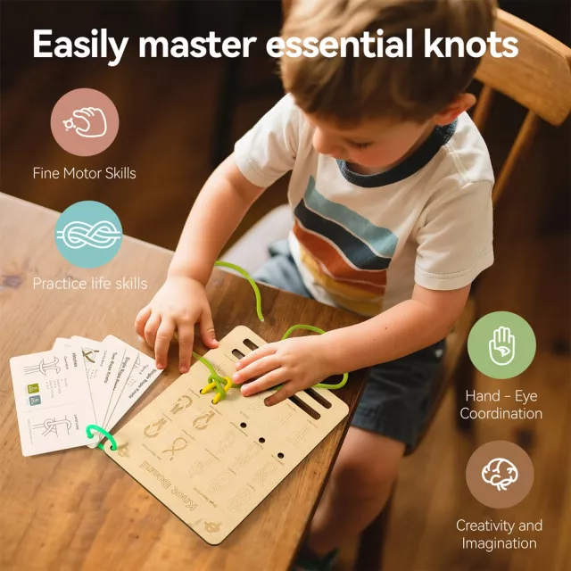 What makes this product truly stand out is its blend of learning and play. While children enjoy threading the rope through the wooden holes, they naturally strengthen their hand-eye coordination, concentration, and patience. The toy also introduces the basics of knot-tying, a valuable life skill that enhances confidence and independence. Whether used during early childhood or as a calming fidget activity for older kids, it remains a versatile and engaging educational tool.